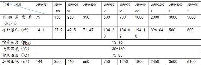 JGPW-Y型壓力噴霧干燥機(jī)組主要技術(shù)參數(shù)