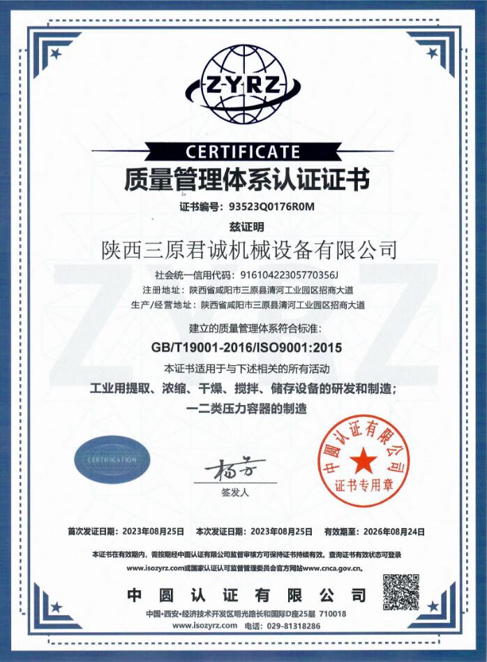 陜西三原君誠機械設備有限公司主要從事西安濃縮器 西安干燥機 西安提取罐 西安制藥設備 的產品,歡迎前來咨詢!
